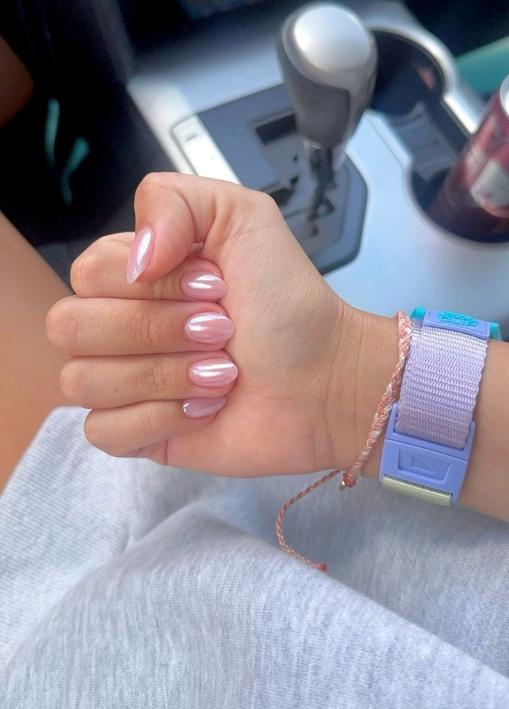 1. Milky pink glossy nails
