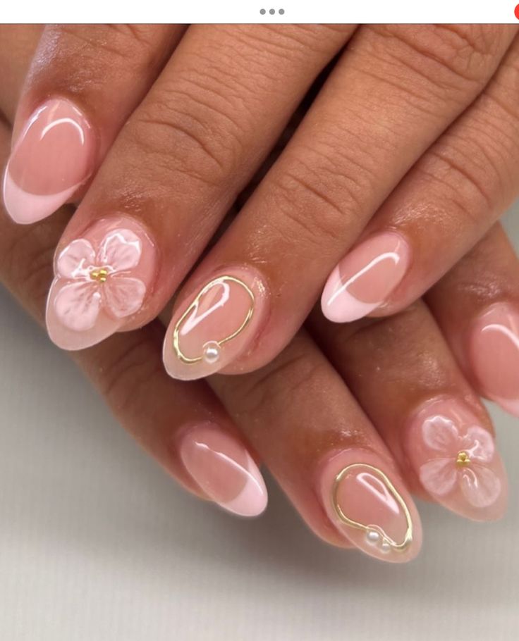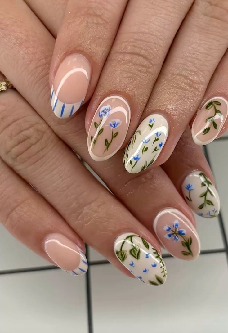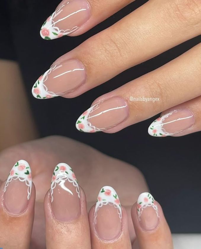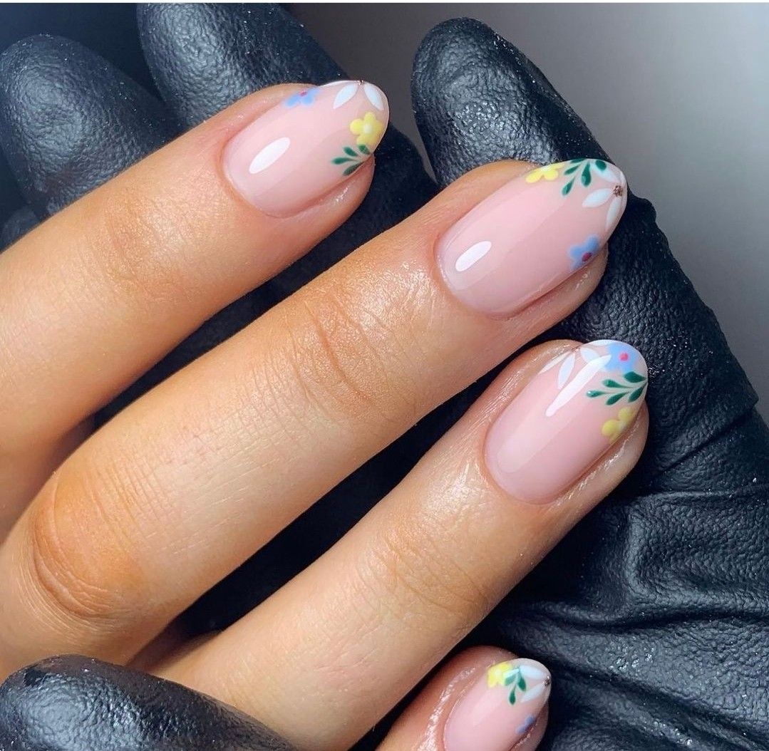 Tiny floral details create a delicate and romantic spring nail design.