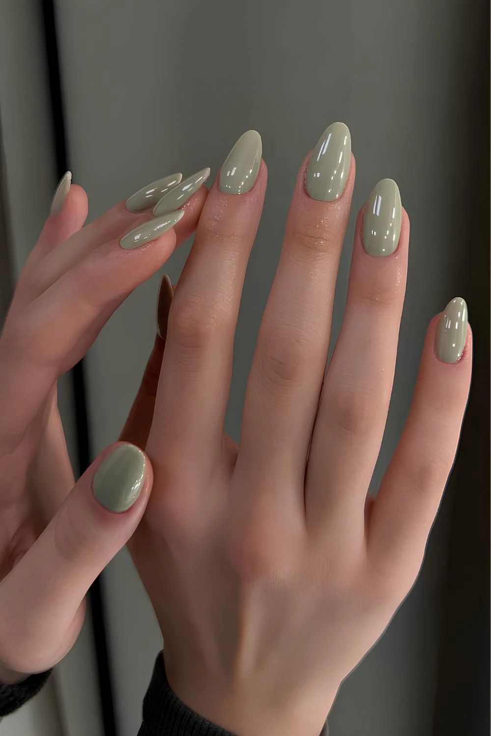 19. Glossy pistachio green nails