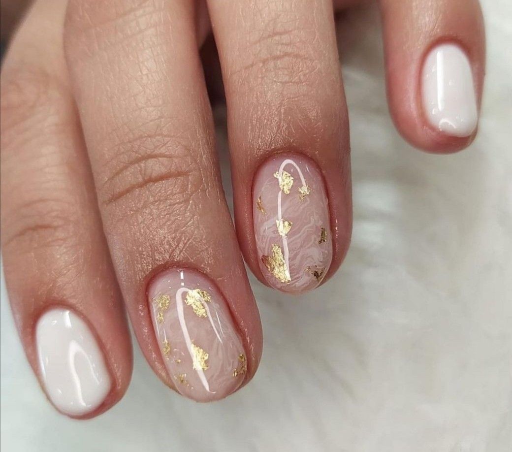 18. Neutral nails with gold foil detail