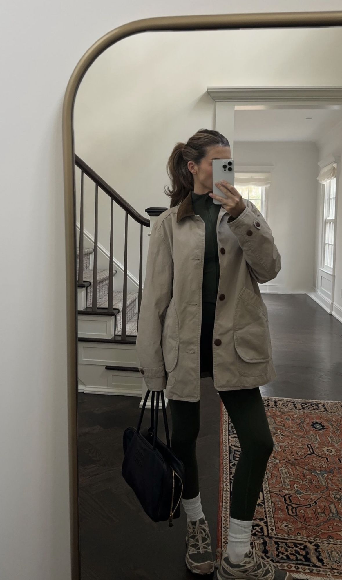 Yes, the barn jacket can do cozy. Toss it over leggings, a hoodie or sweatshirt, and your favorite sneakers. This is the outfit that says “I could run errands or go for a walk in the countryside.”