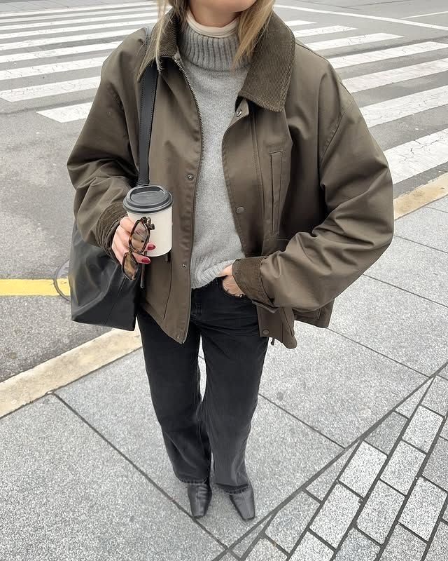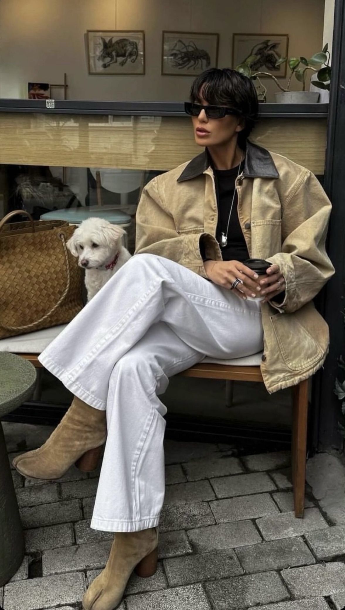 This combo gives the barn jacket a refined twist — perfect for casual workdays or coffee runs that somehow turn into dinner plans.