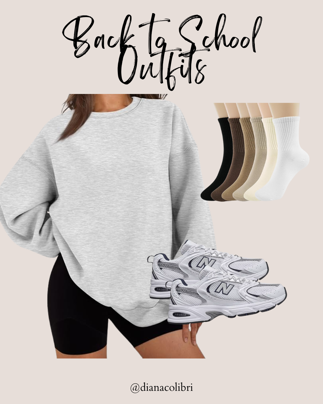 2. Oversized Sweatshirt + Biker Shorts + High Socks