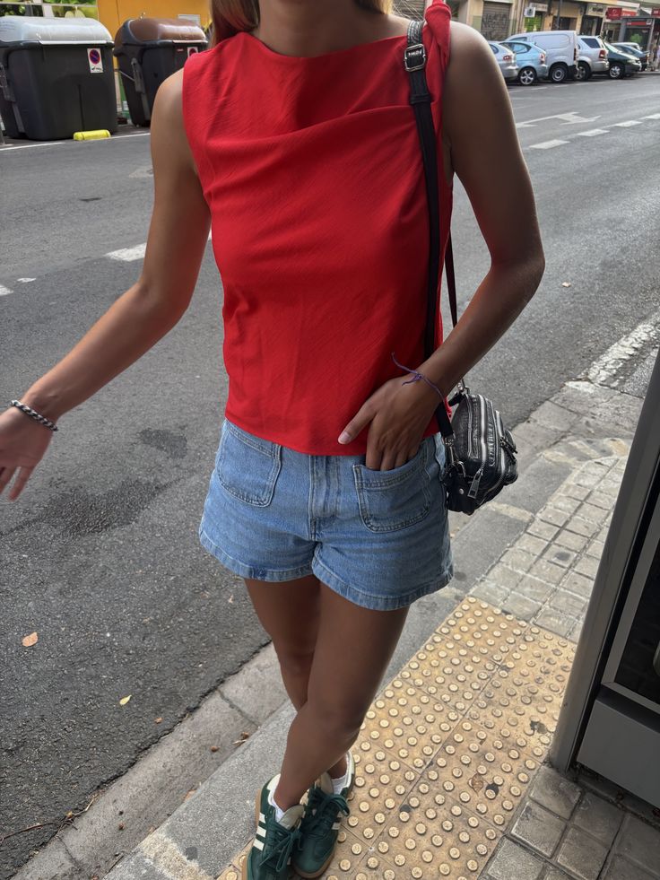 Red is having a major moment this fall—whether it’s deep crimson, fiery cherry, or muted brick tones. Right now, try a bold red top with denim shorts or swap your usual handbag for a red crossbody.