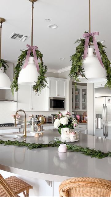 I like the kitchen to feel clean and functional, so I go subtle here. Just enough to acknowledge the season without feeling like holiday decor is competing with the coffee machine.