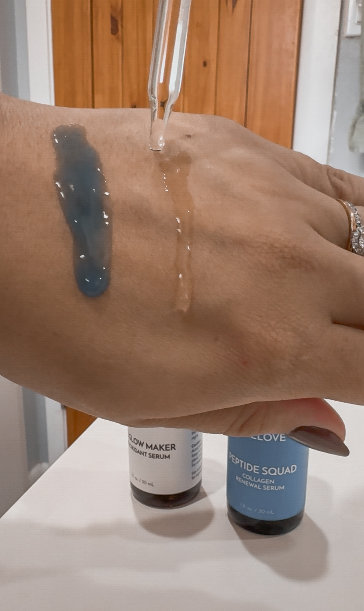 Once my vitamin C has had a minute to do its thing, I follow up with the Peptide Squad serum.