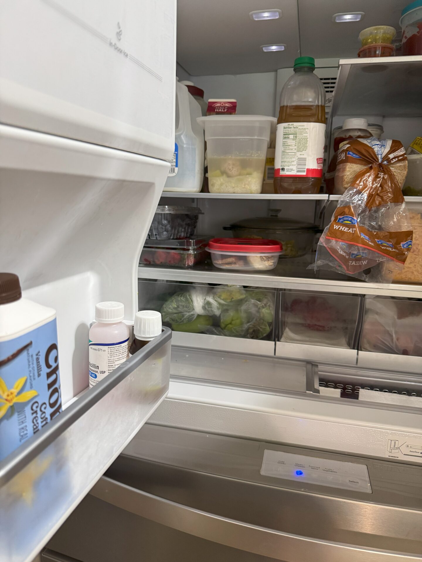 This one’s optional. But if I have the energy, I do a 5-minute fridge purge: