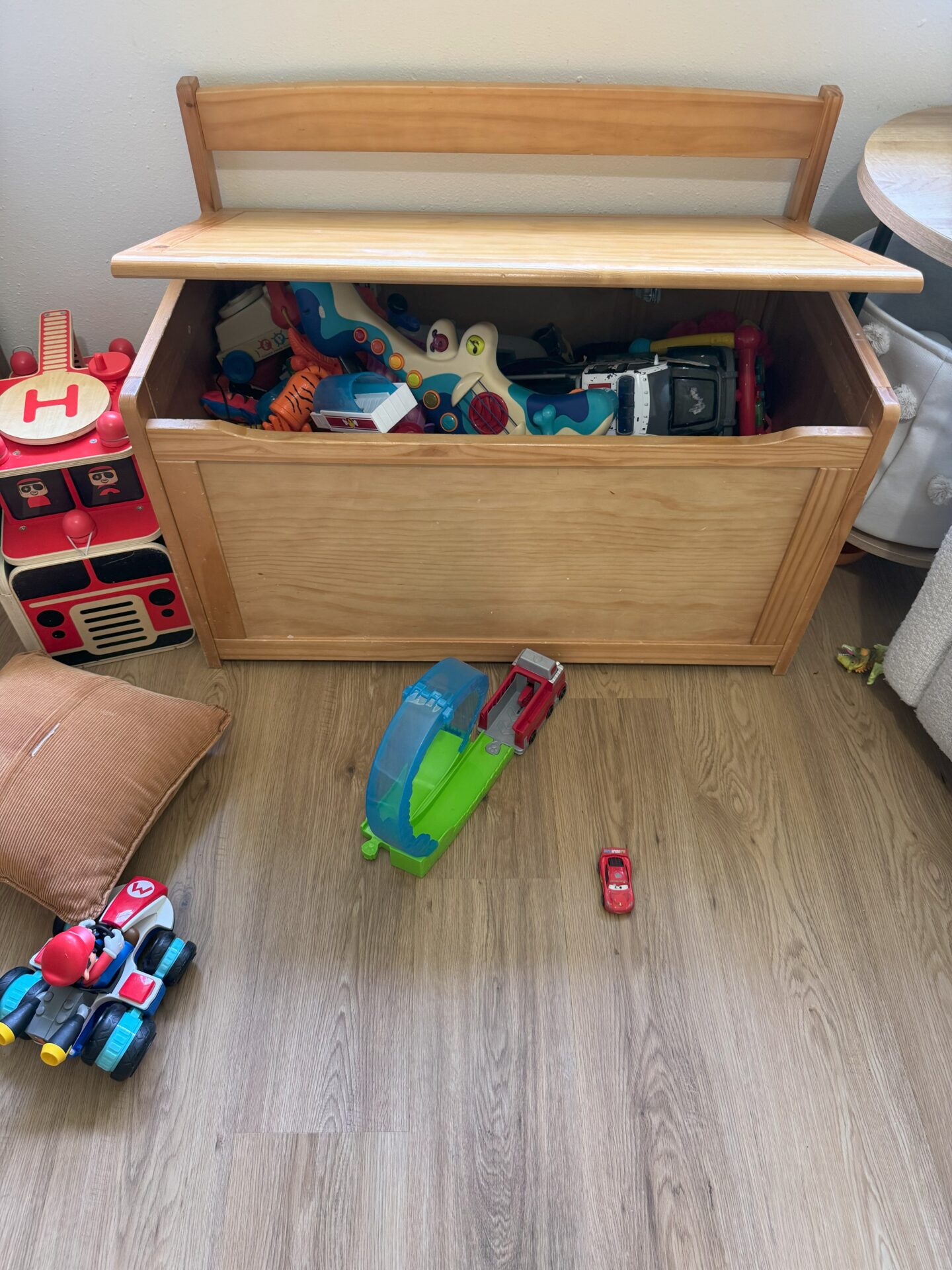 - Throw away/put away (use mom judgement here) the mysterious stickers/toys/random socks scattered around