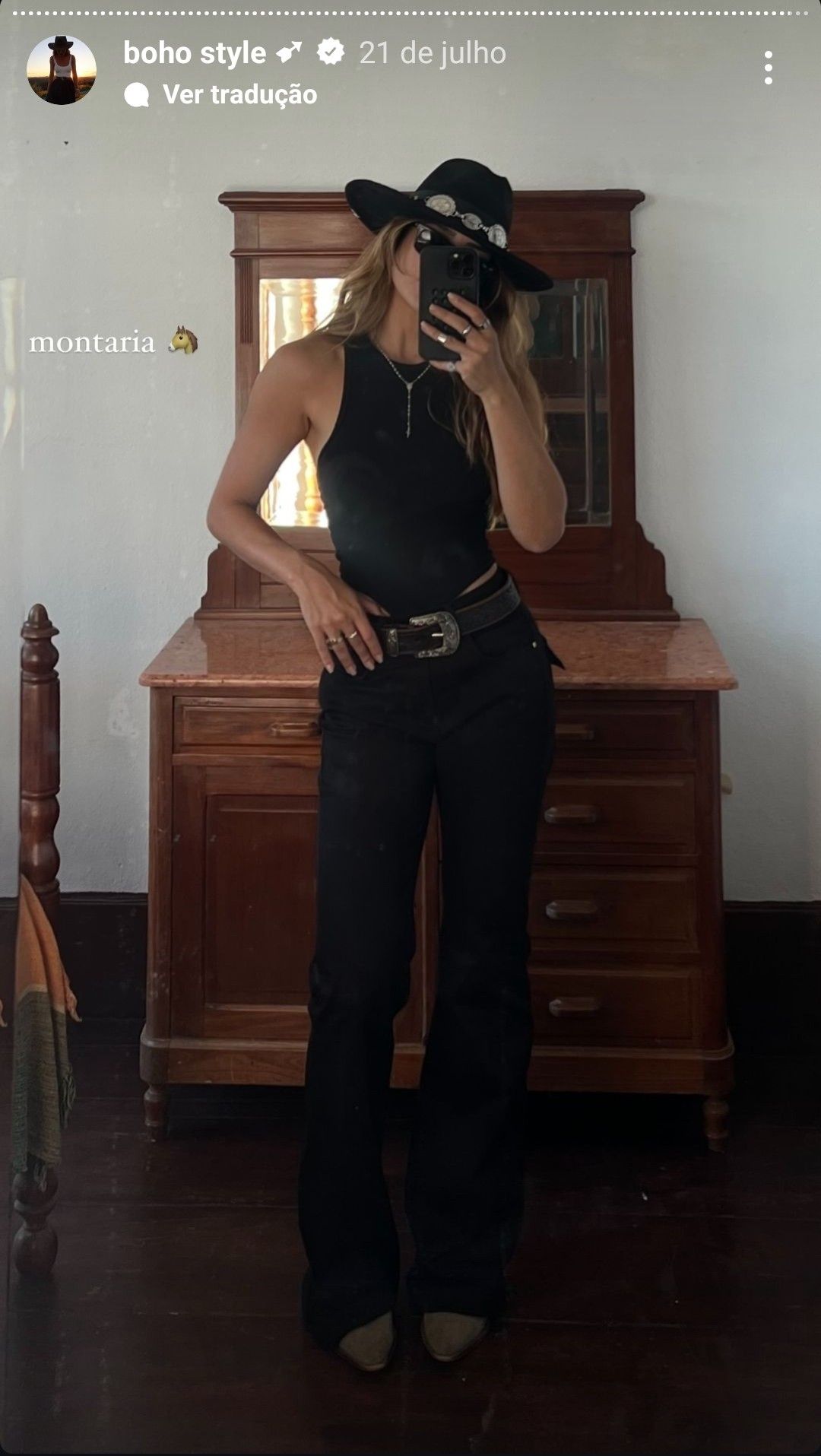 Even when she’s off-stage, Ella keeps the western vibe alive. This one’s easy, wearable, and full of her signature edge.