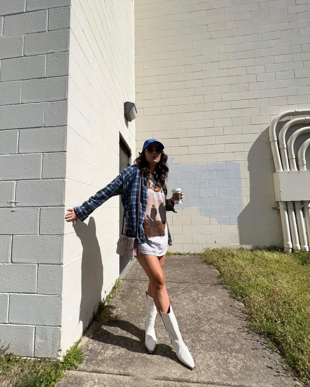 This look works just as well at a country concert as it does for an edgy night out. The key? Confidence and killer boots.