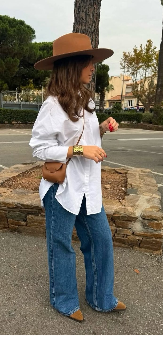 Mid-rise jeans can work beautifully too, but they need a tucked or slightly cropped top to keep the proportions balanced.